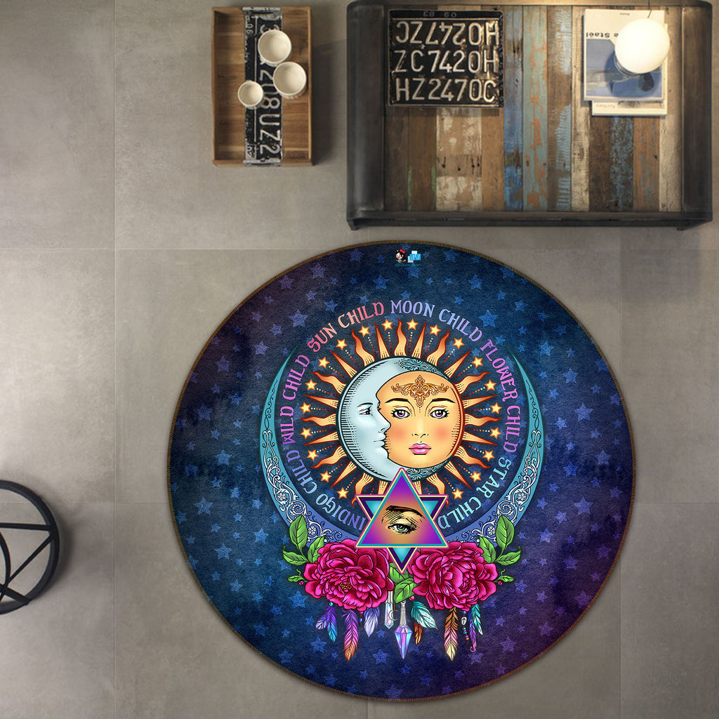 3D Sun Moon Flower 8882 Brigid Ashwood Rug Round Non Slip Rug Mat