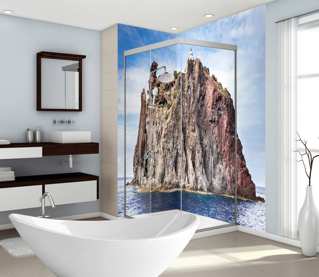 3D Sea Island Mountain 69 Bathroom Wallpaper