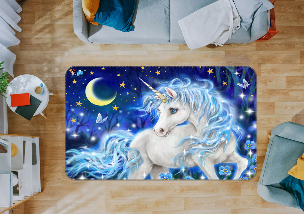 3D Unicorn Moon Stars 5712 Kayomi Harai Rug Non Slip Rug Mat