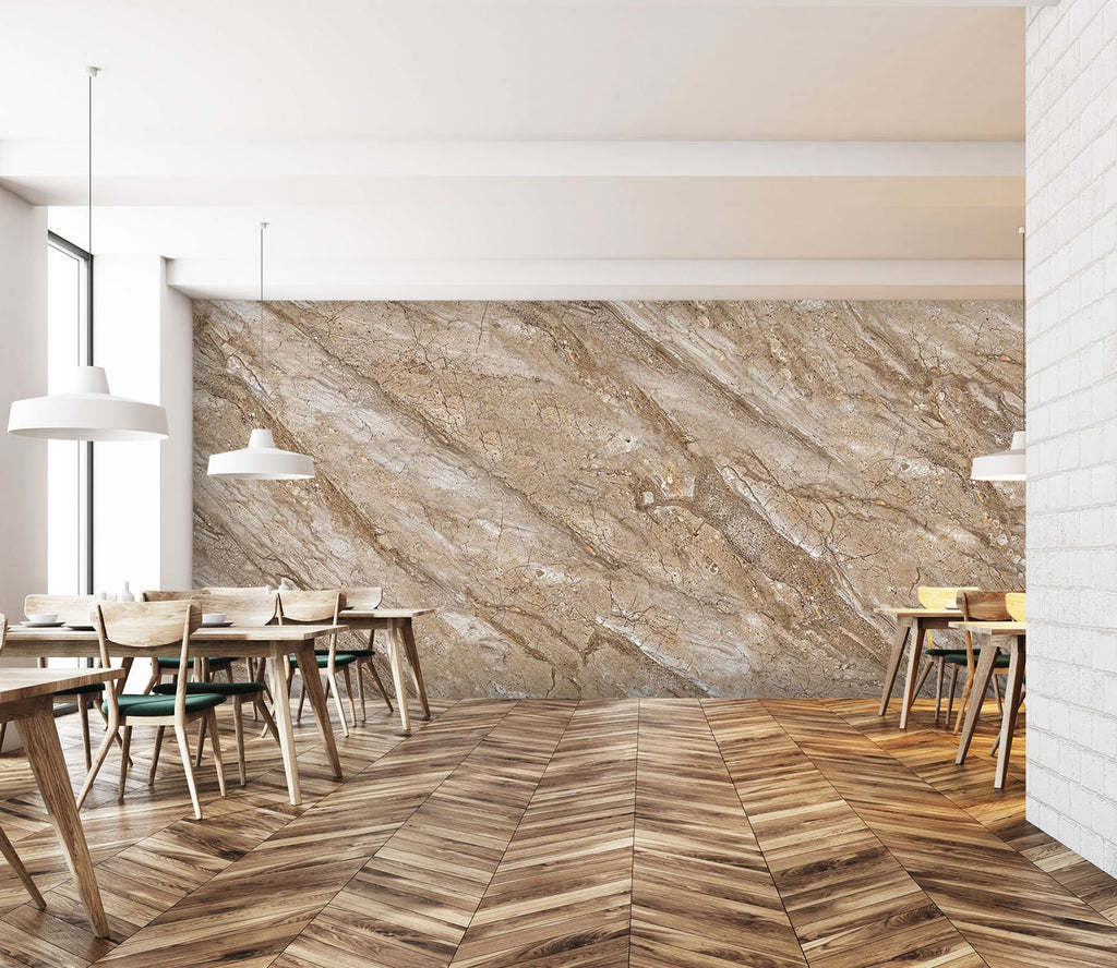 Align panel 2 to panel 1. Simply match the pattern of the mural (with 2cm overlap).No need to cut. Repeat for additional panels. Trim any ceiling and baseboard overage, lt's better to wipe the mural's surface with a wet cloth after the installation. Because it will make more sticky.