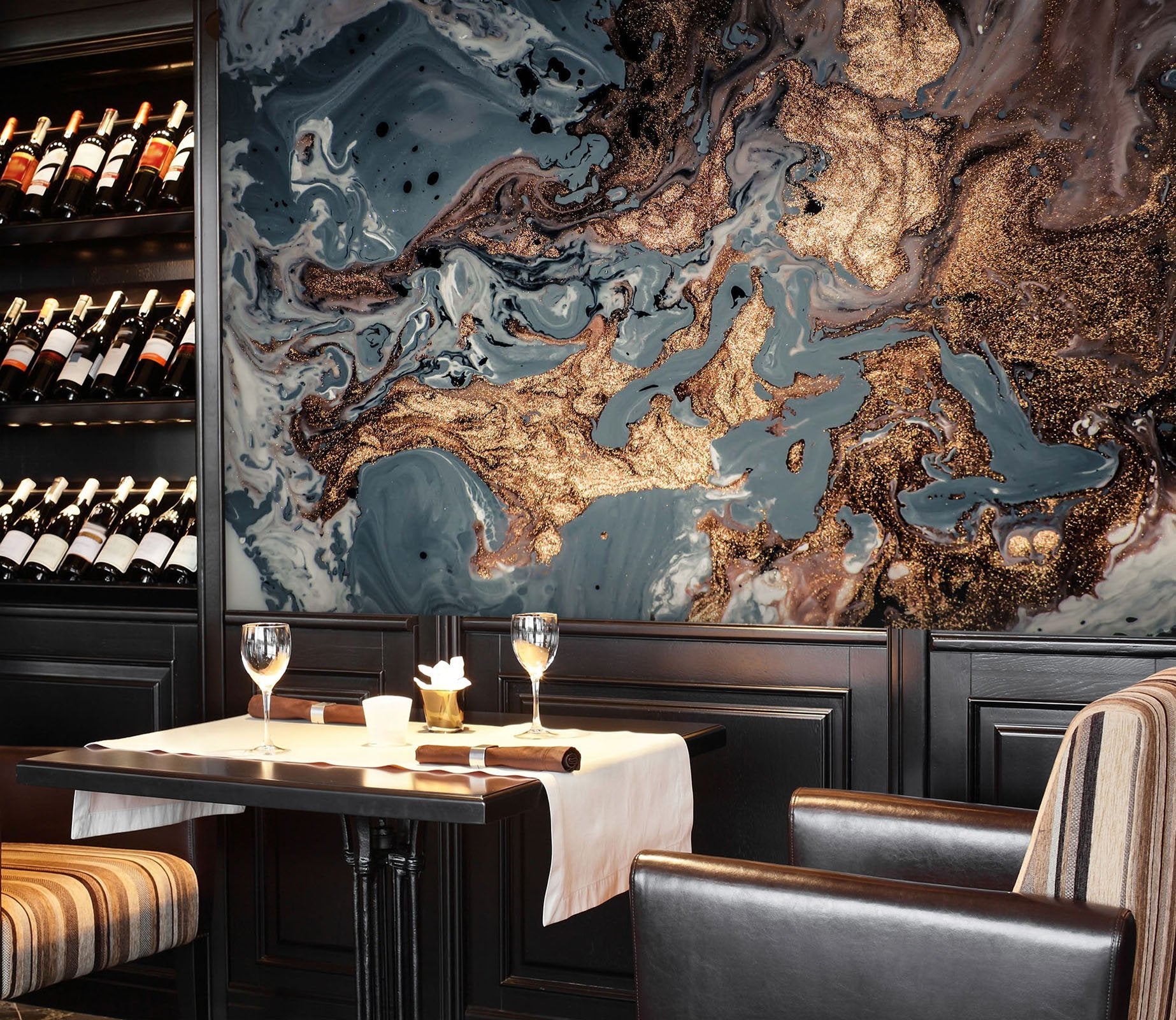 Align panel 2 to panel 1. Simply match the pattern of the mural (with 2cm overlap).No need to cut. Repeat for additional panels. Trim any ceiling and baseboard overage, lt's better to wipe the mural's surface with a wet cloth after the installation. Because it will make more sticky.