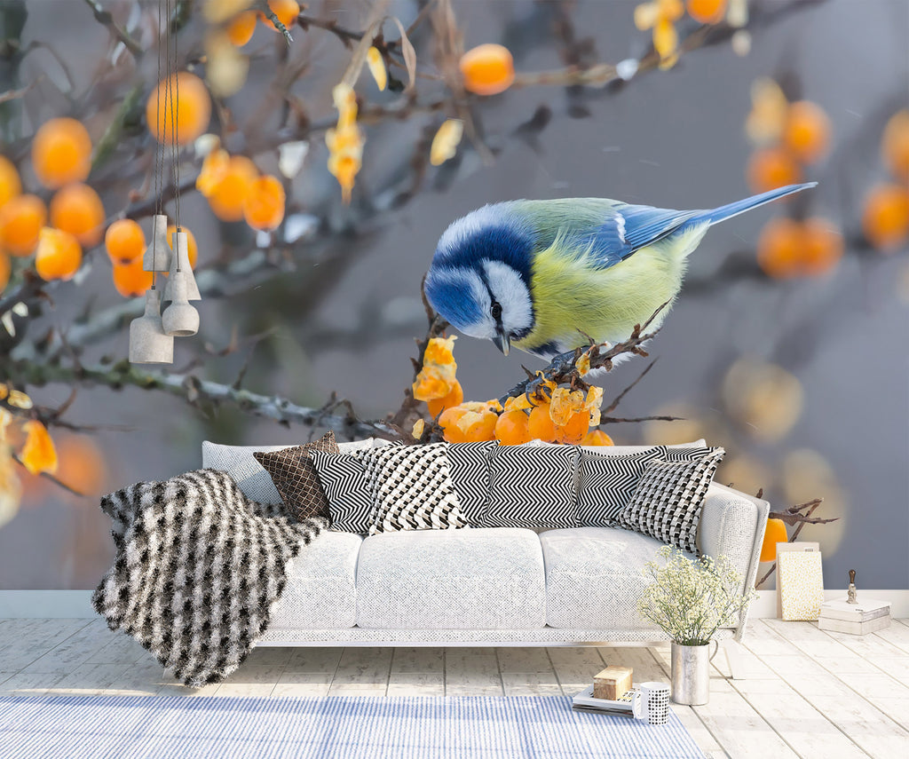 3D Blue Bird Flower Branch 57049 Wall Murals Sinsin
