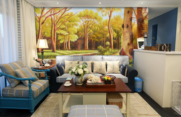 Align panel 2 to panel 1. Simply match the pattern of the mural (with 2cm overlap).No need to cut. Repeat for additional panels. Trim any ceiling and baseboard overage, lt's better to wipe the mural's surface with a wet cloth after the installation. Because it will make more sticky.