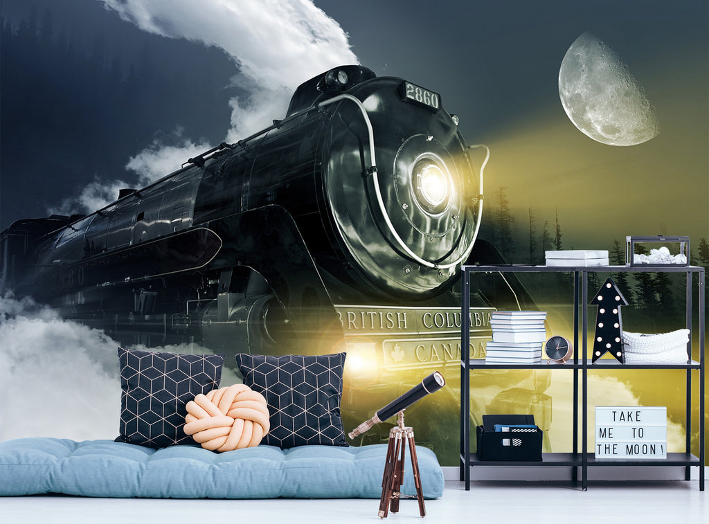 3D Moon Black Train 162 Vehicle Wall Murals Zoe