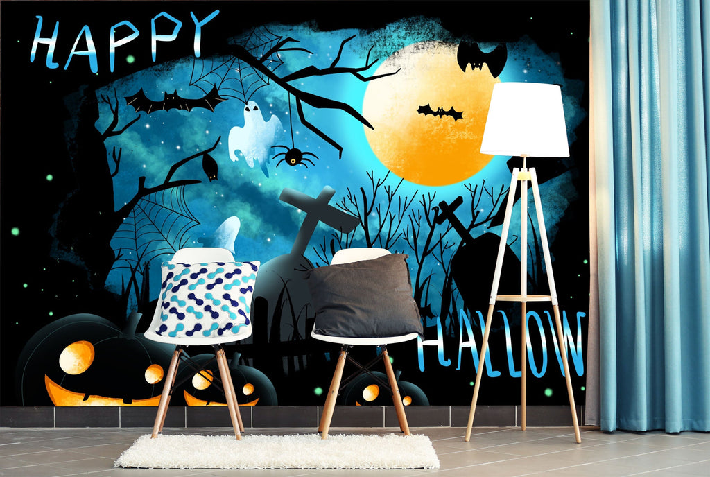 3D Night Bat Pumpkin 1004 Halloween Wall Murals Zoe