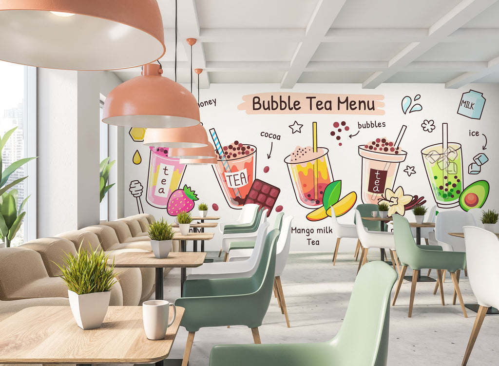3D Pearl Tea 2002 Fruit Bubble Tea Milk Tea Shop Wall Murals Amy