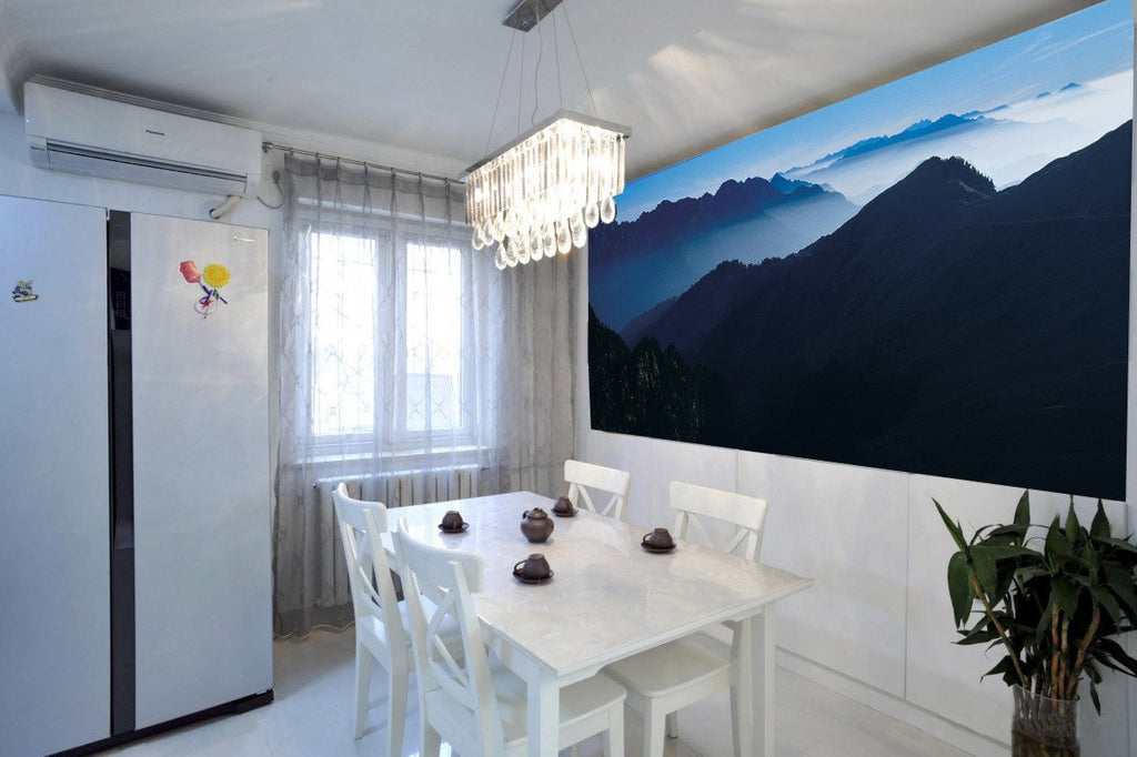 Align panel 2 to panel 1. Simply match the pattern of the mural (with 2cm overlap).No need to cut. Repeat for additional panels. Trim any ceiling and baseboard overage, lt's better to wipe the mural's surface with a wet cloth after the installation. Because it will make more sticky.