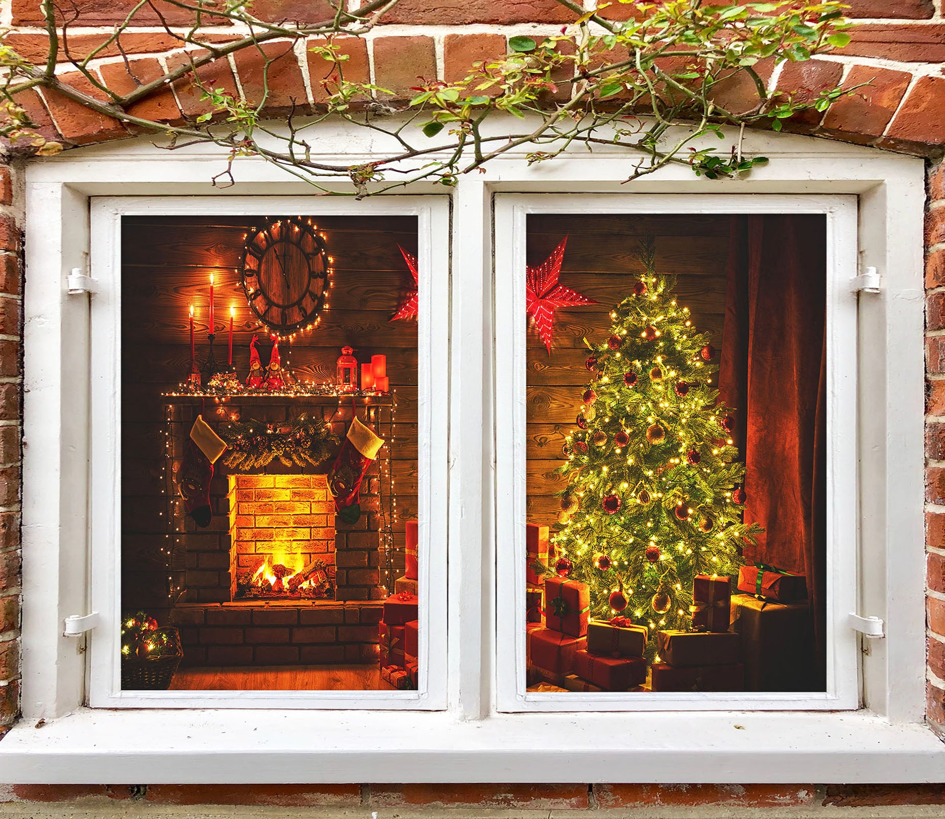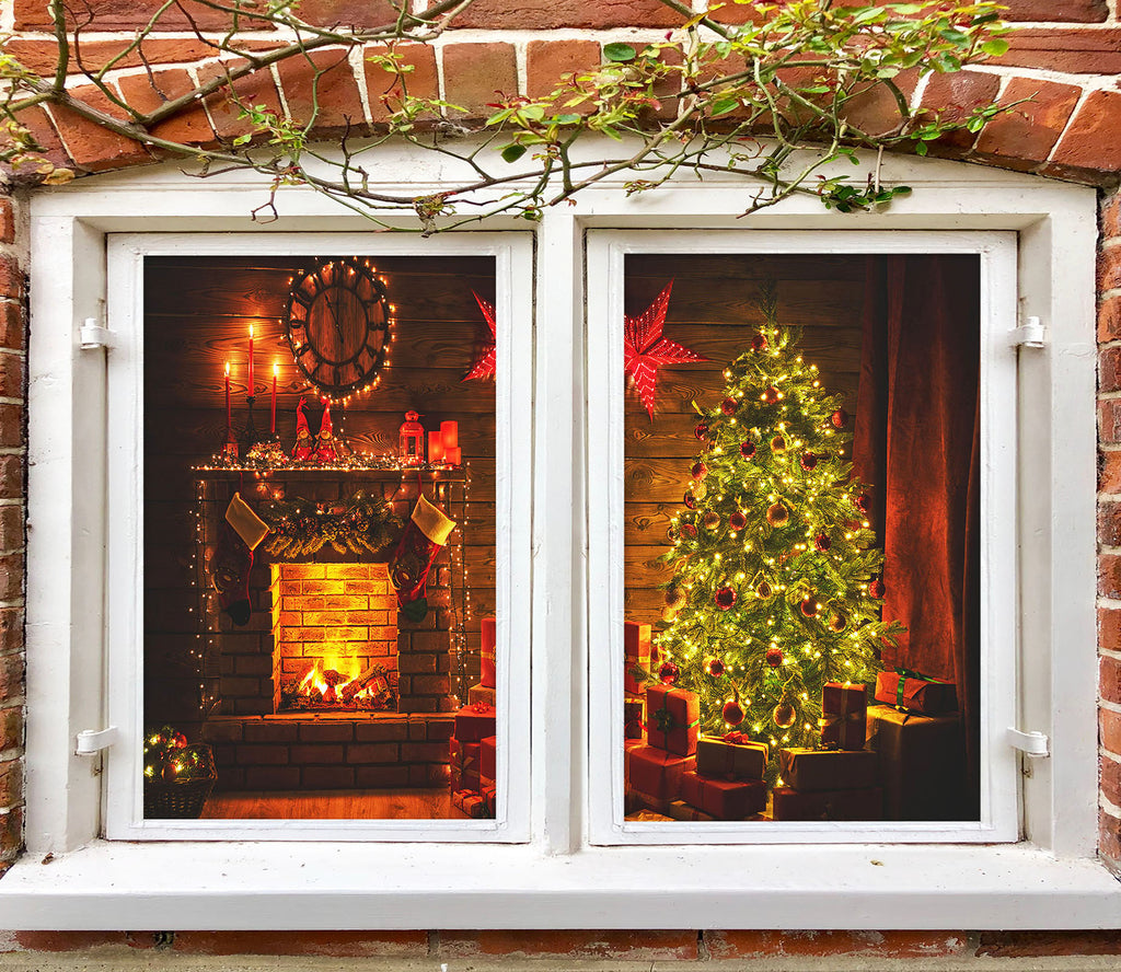 3D Fireplace Tree 1021 Christmas Window Film Print Sticker Cling Stained Glass Xmas