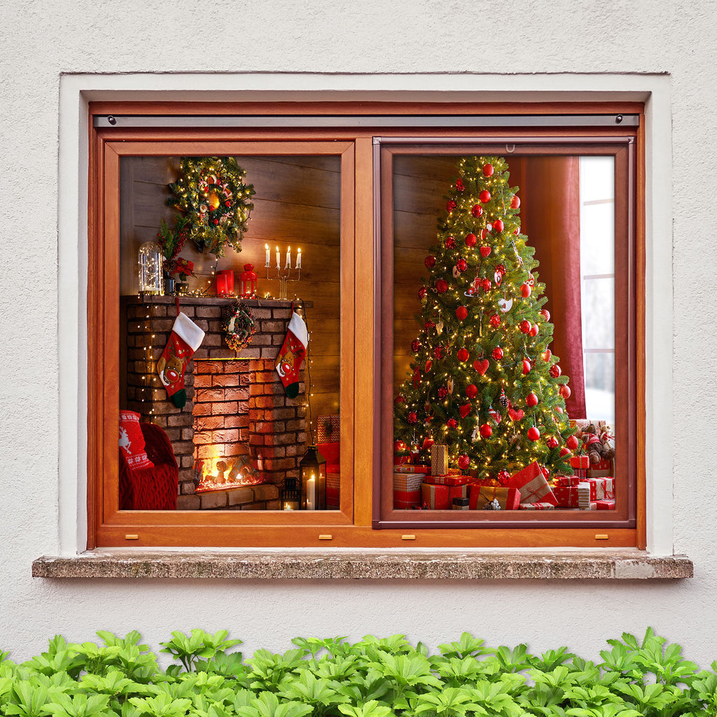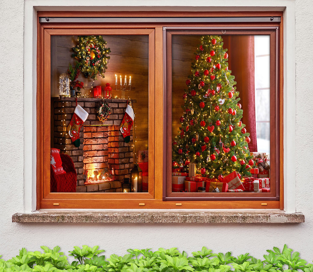 3D Fireplace Tree 1035 Christmas Window Film Print Sticker Cling Stained Glass Xmas