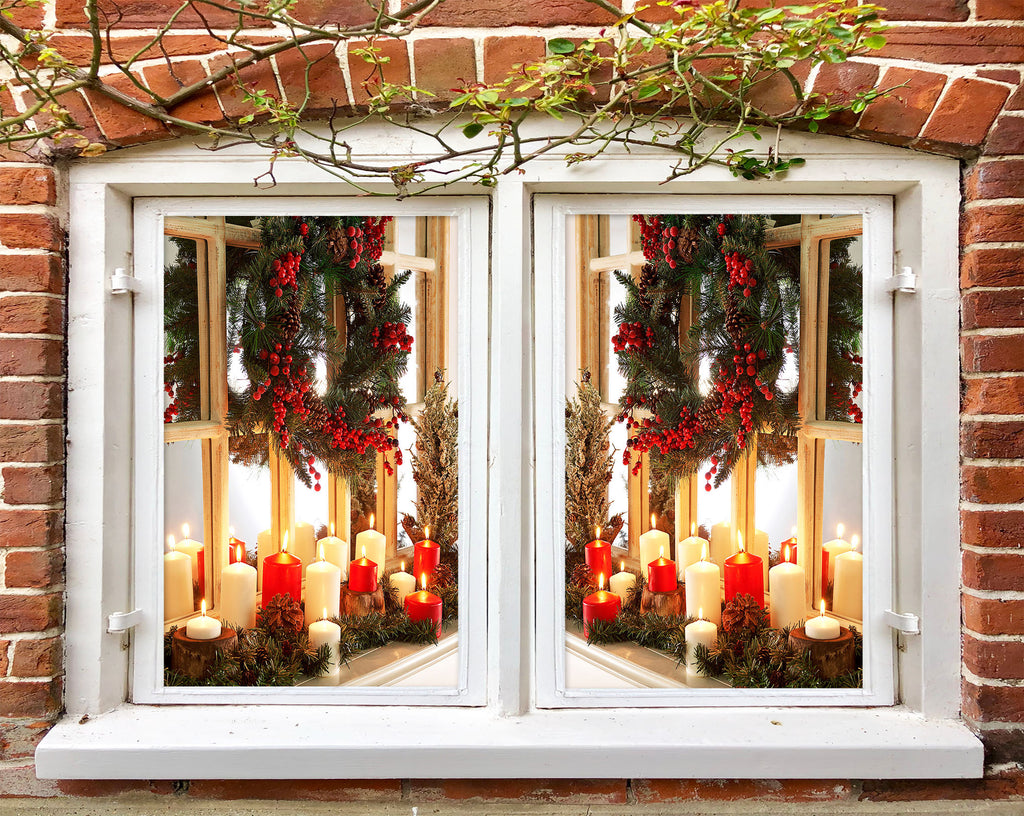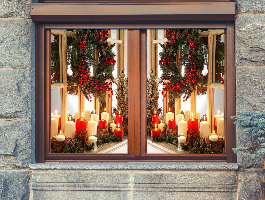 3D Red Candle 1025 Christmas Window Film Print Sticker Cling Stained Glass Xmas