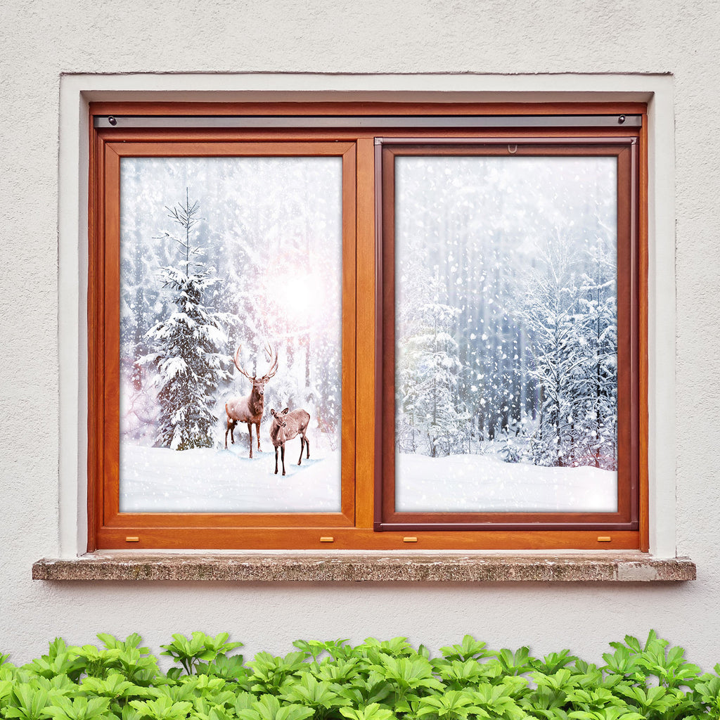 3D Snow Elk 1015 Christmas Window Film Print Sticker Cling Stained Glass Xmas Amy