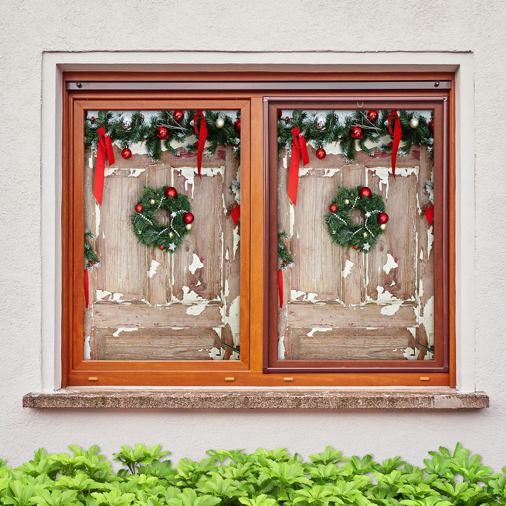 3D Wreath 1023 Christmas Window Film Print Sticker Cling Stained Glass Xmas Amy