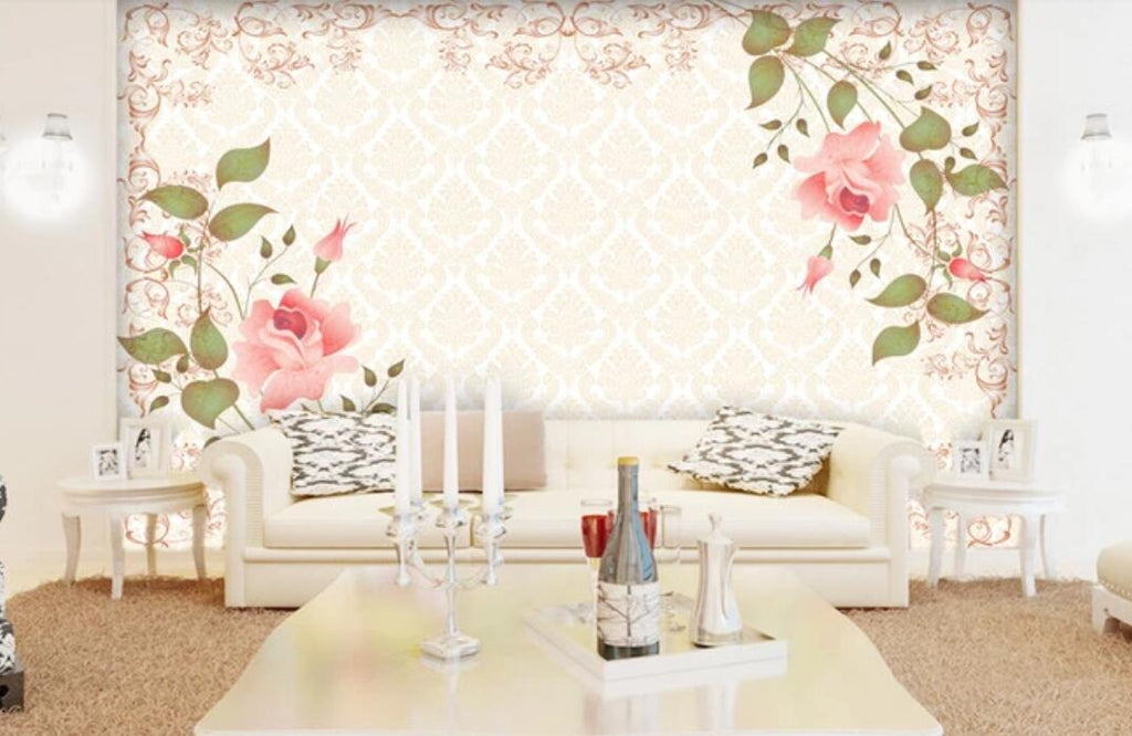 3D Two Pink Flowers 1077 Wall Murals Romy