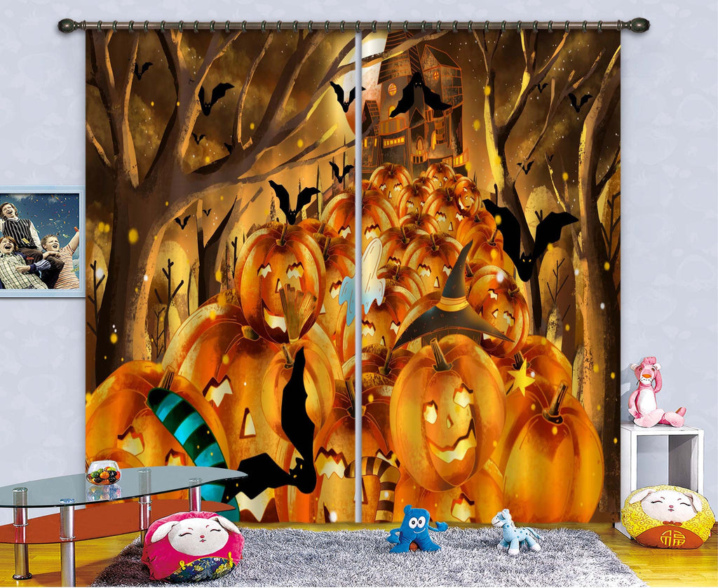 3D Bat Ghost Pumpkin 028 Halloween Curtains Drapes Zoe