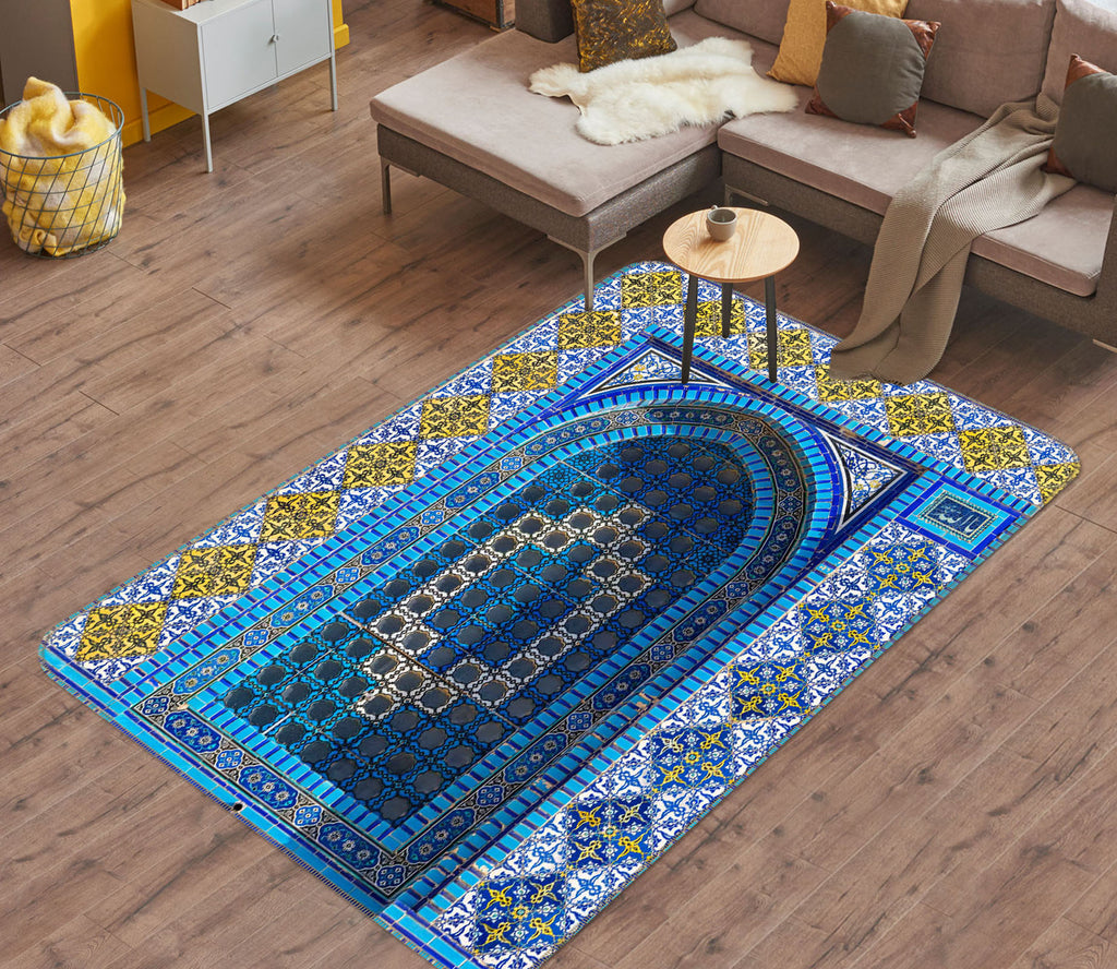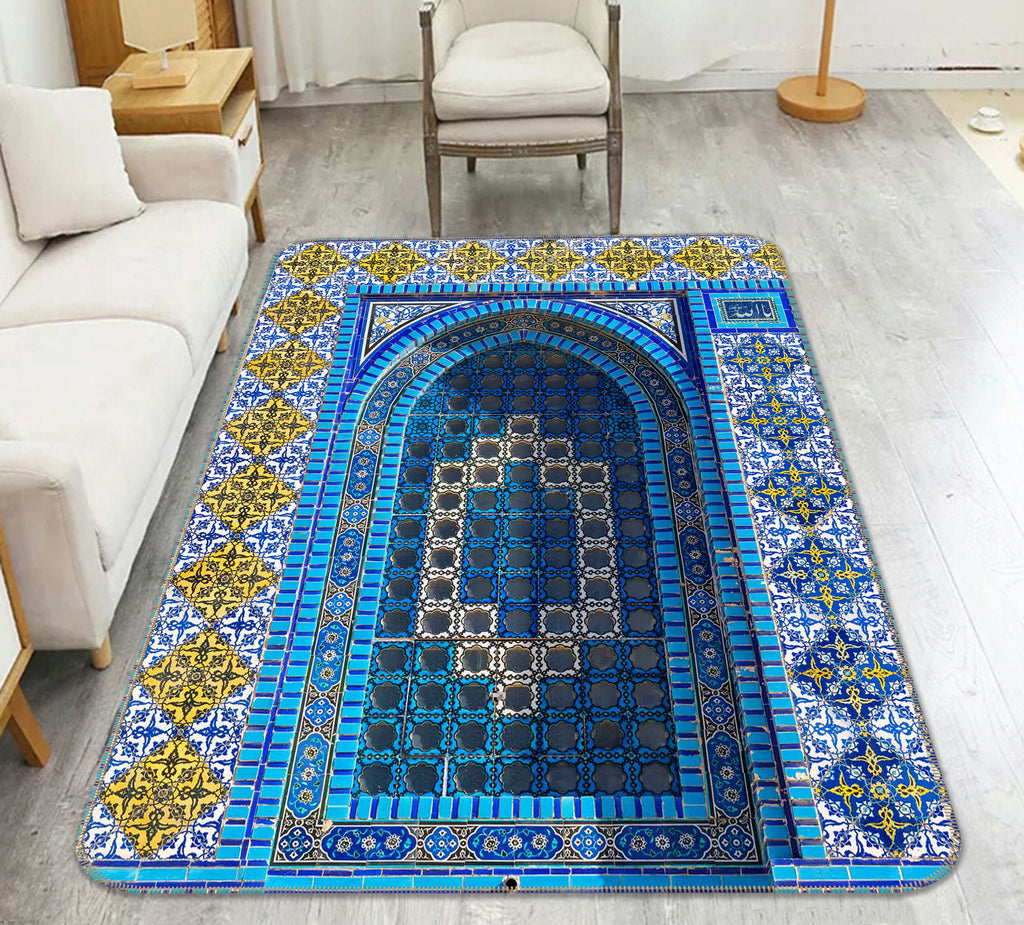 3D Blue Pattern 193 Assaf Frank Rug Non Slip Rug Mat Zoe