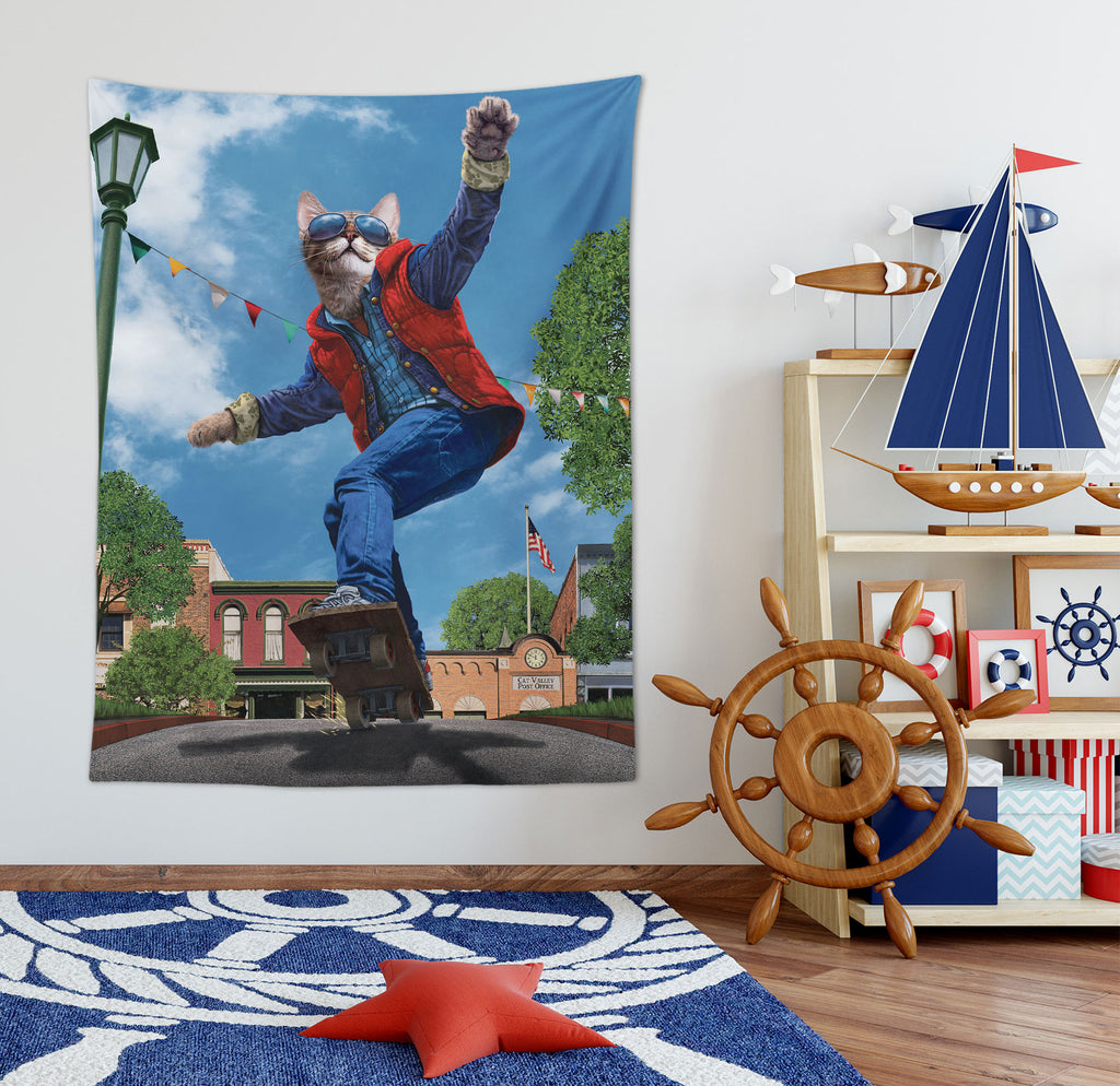3D Cat Skateboard 116215 Vincent Tapestry Hanging Cloth Hang