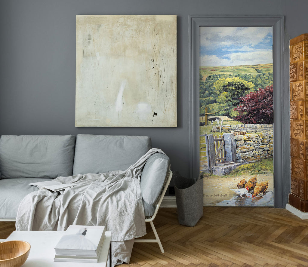 3D Chicken Hillside Trees 103159 Trevor Mitchell Door Mural Sinsin