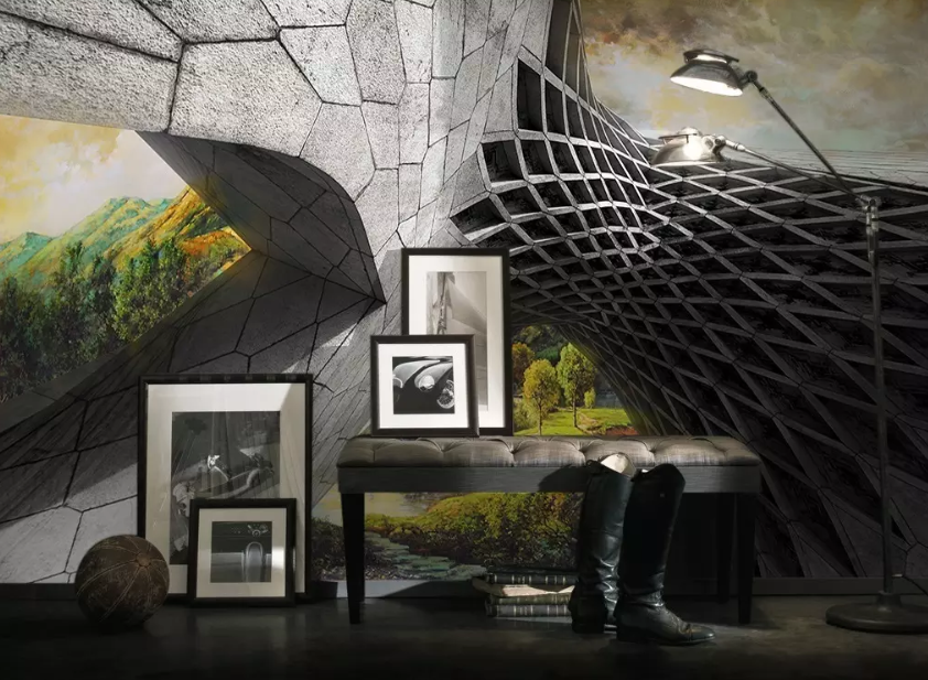 Align panel 2 to panel 1. Simply match the pattern of the mural (with 2cm overlap).No need to cut. Repeat for additional panels. Trim any ceiling and baseboard overage, lt's better to wipe the mural's surface with a wet cloth after the installation. Because it will make more sticky.