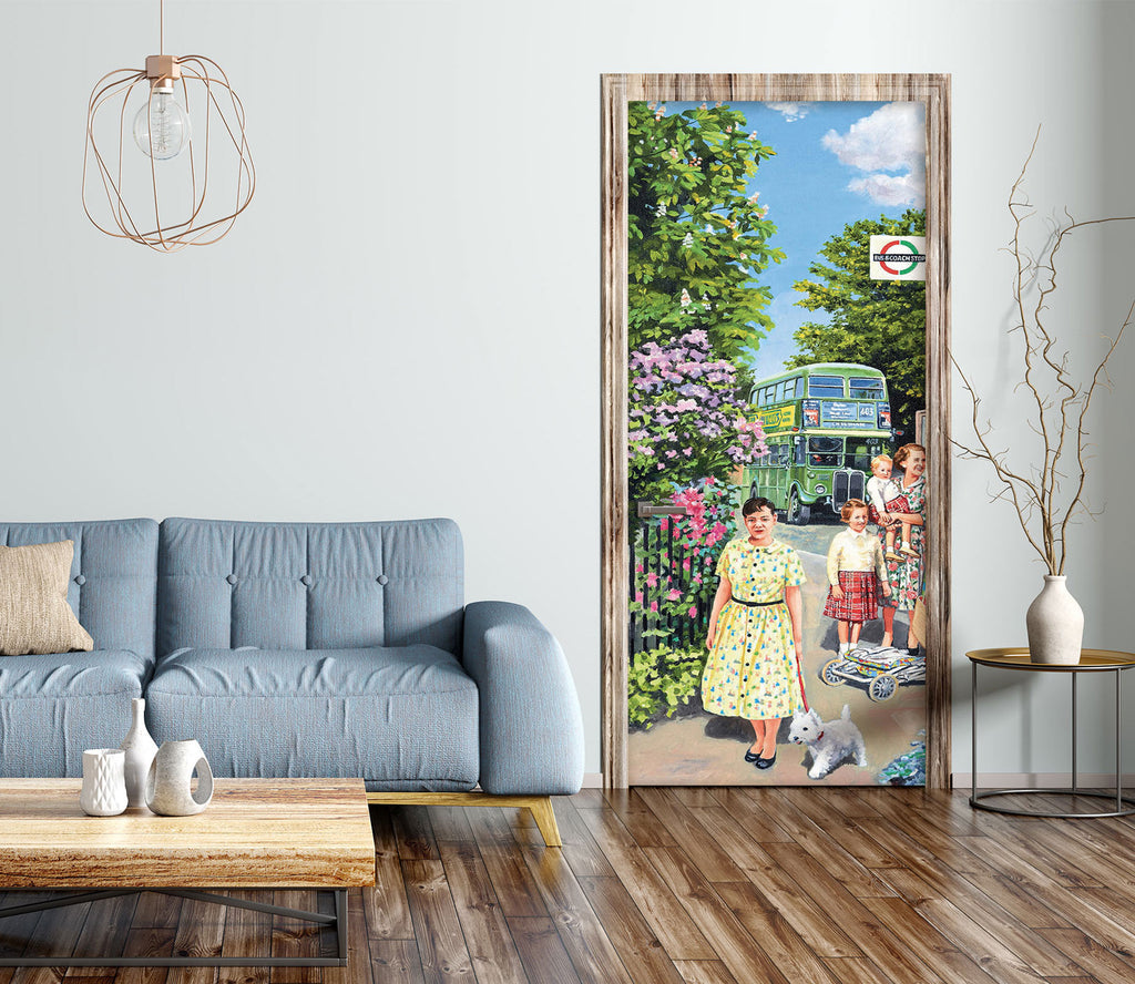 3D Flower Bush Bus People 103149 Trevor Mitchell Door Mural Sinsin