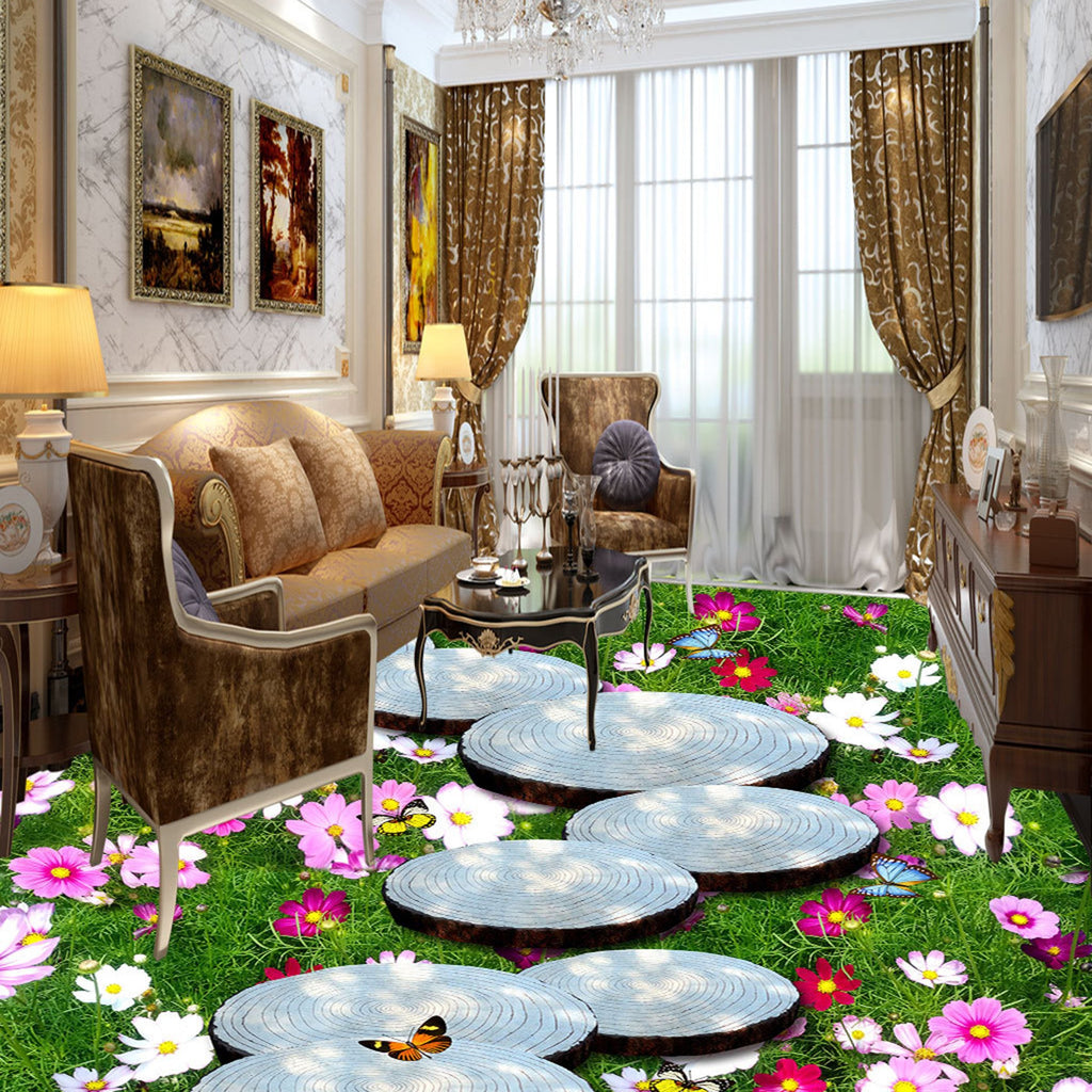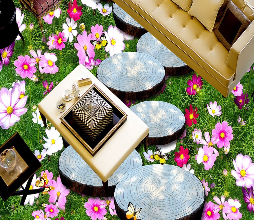 3D Flower Butterfly WG661 Floor Mural Dai