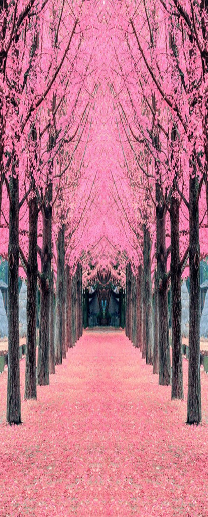3D flowers road trees door mural