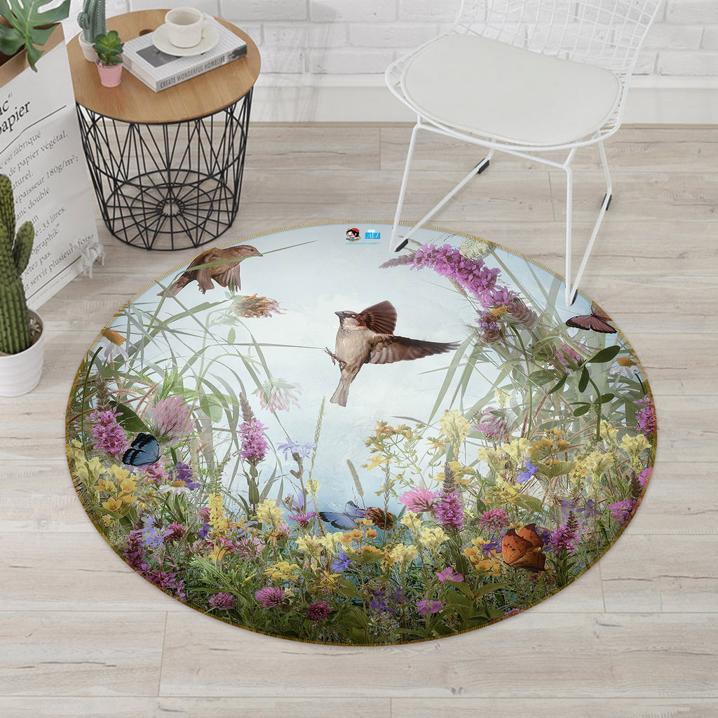 3D Garden Butterfly 5018 Beth Sheridan Rug Round Non Slip Rug Mat
