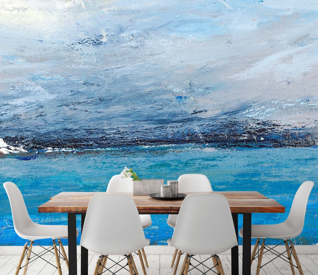 Make sure the wall surface is flat, clean and smooth. A clean and dry wall will help the adhesive from your wall mural to keep its stickiness. Put all panels on the ground, check the order. Measure and write down the dimensions of each panel. Mark vertical guidelines according to the panel's dimensions. Leave 2-3cm overlap between panels.