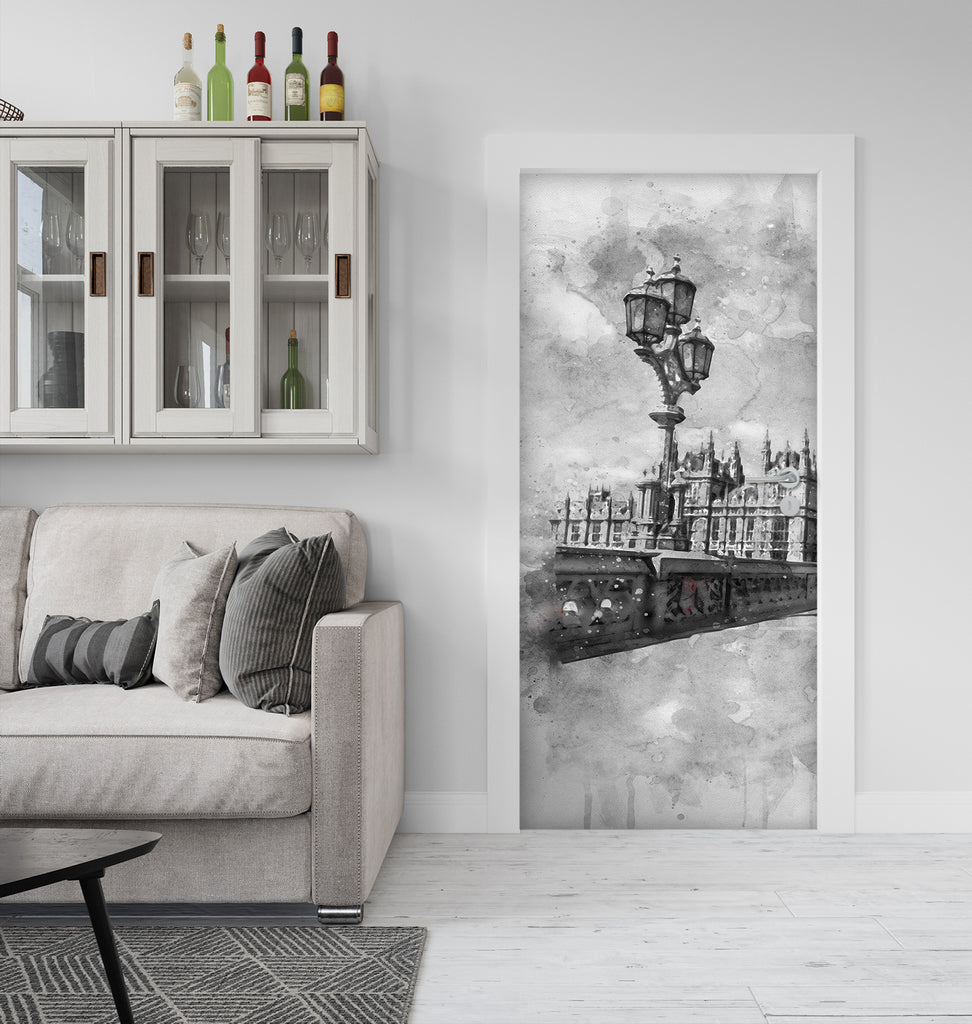 3D Gray Street Light Building 101172 Assaf Frank Door Mural Sinsin