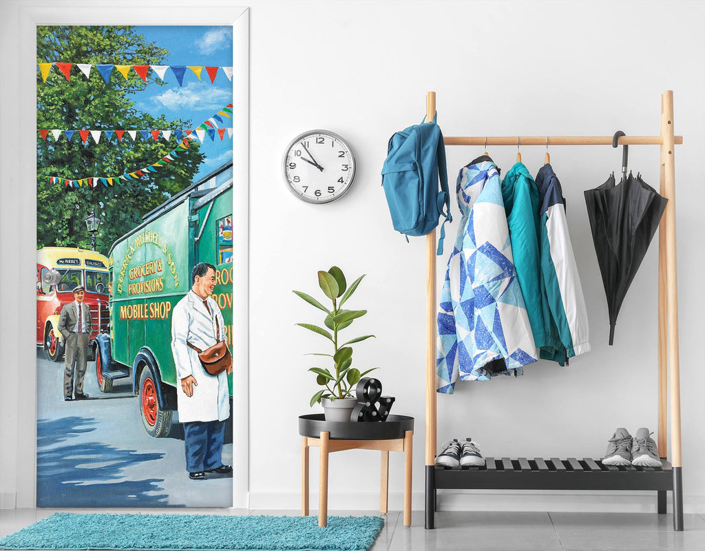 3D Green Car Bus 10398 Trevor Mitchell Door Mural Sinsin