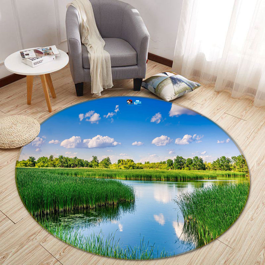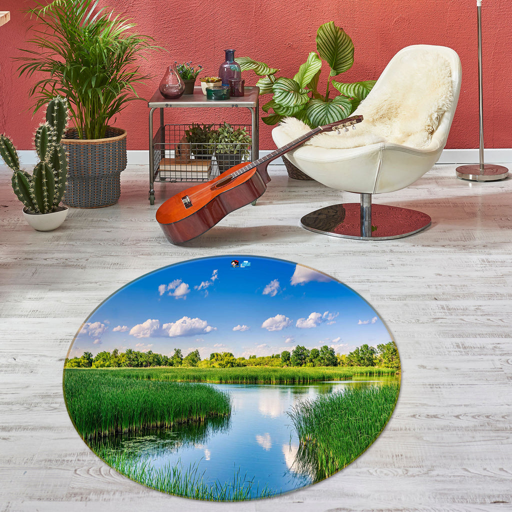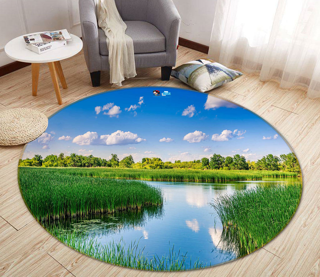 3D Green Grass Lake 5035 Beth Sheridan Rug Round Non Slip Rug Mat