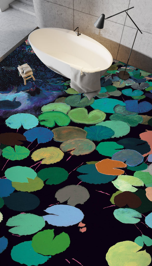 3D Green Lotus Leaf Pattern 96103 Allan P. Friedlander Floor Mural Wallpaper Murals Self-Adhesive Removable Print Epoxy
