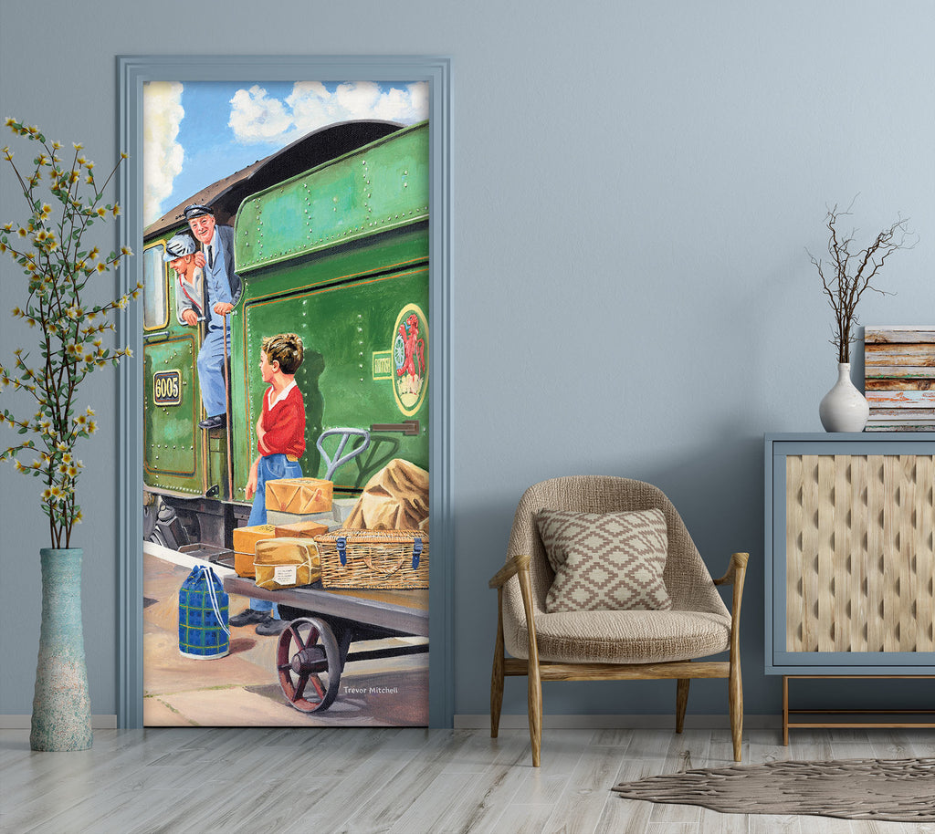 3D Green Train 103179 Trevor Mitchell Door Mural Sinsin