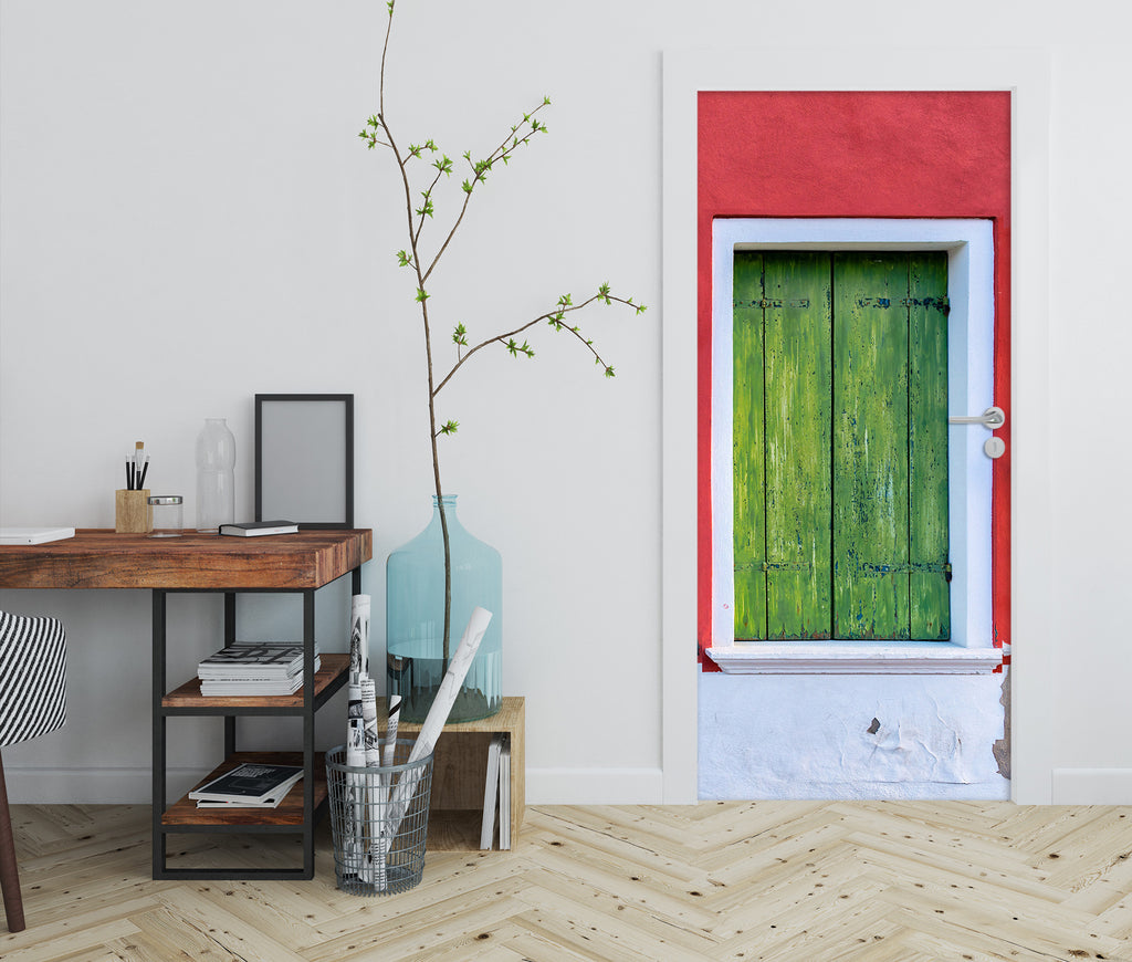 3D Green Wooden Windows 12228 Marco Carmassi Door Mural