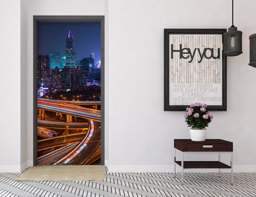 3D High-Rise Night Highway 119107 Marco Carmassi Door Mural Sinsin