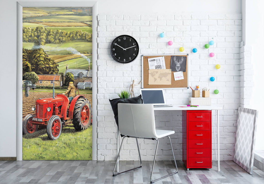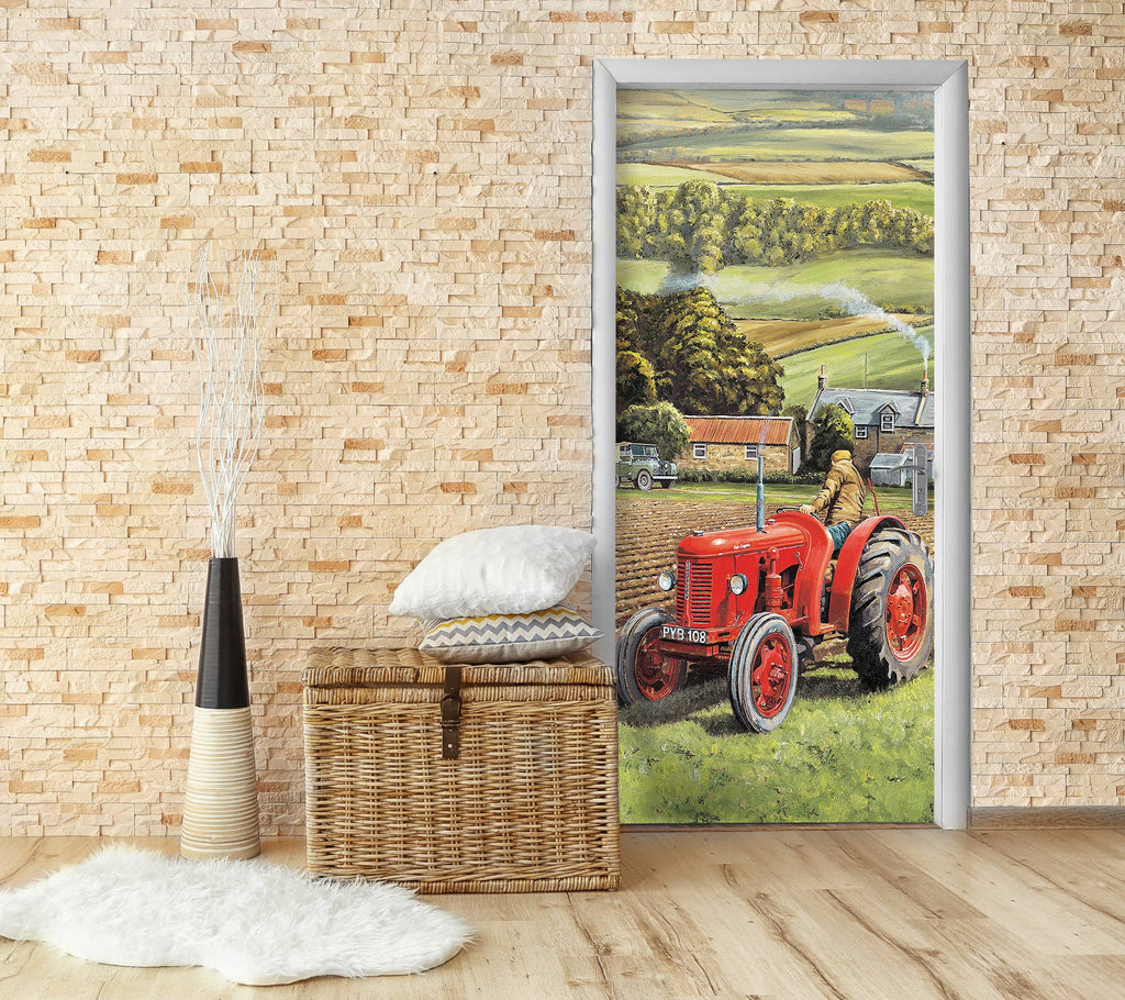 3D Hillside Meadow Red Tractor 10393 Trevor Mitchell Door Mural Sinsin