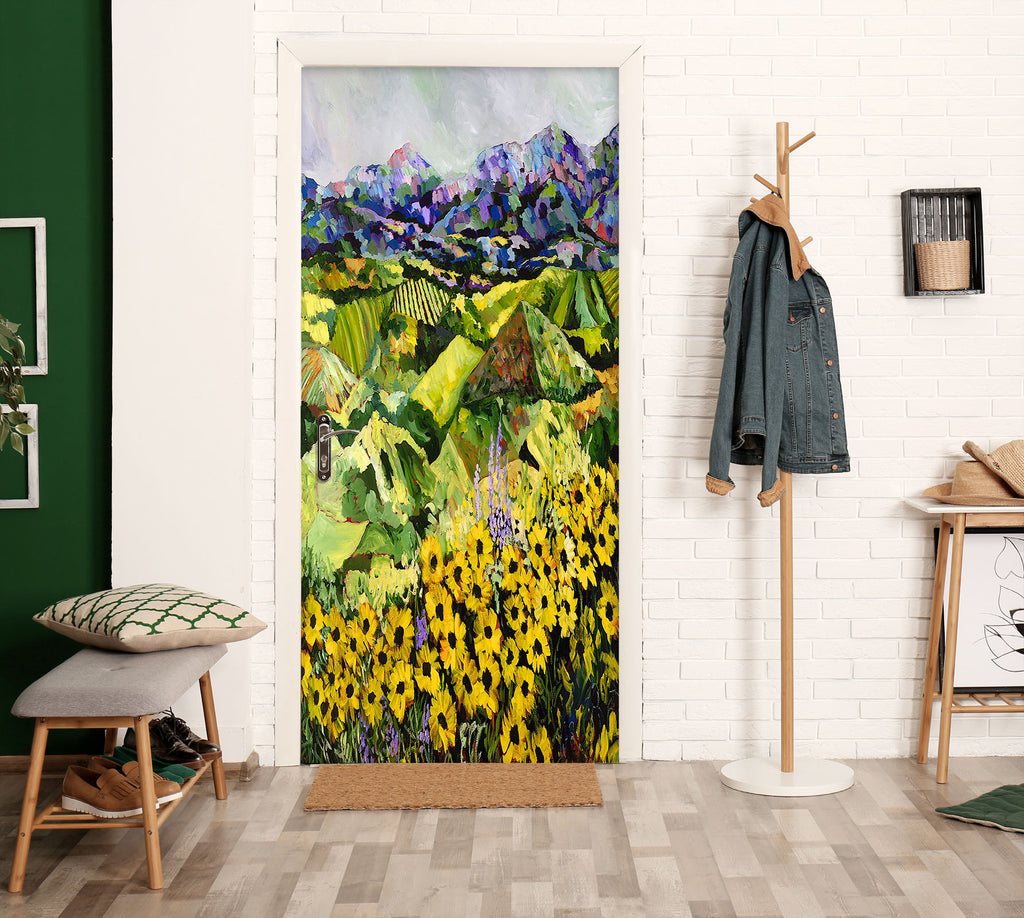 3D Hillside Mountains Yellow Daisies 9342 Allan P. Friedlander Door Mural Sinsin