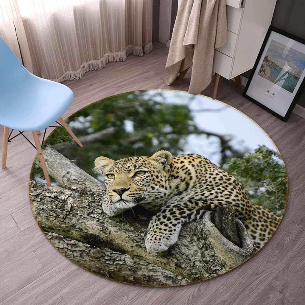 3D Kneeling Tiger 068 Animal Round Non Slip Rug Mat