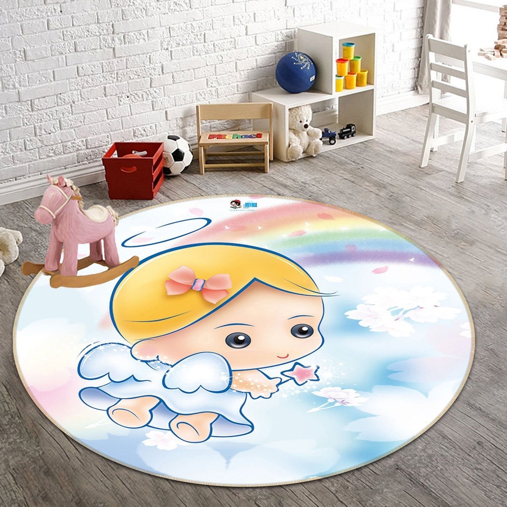 3D Lovely Rainbow Angel 33 Round Non Slip Rug Mat