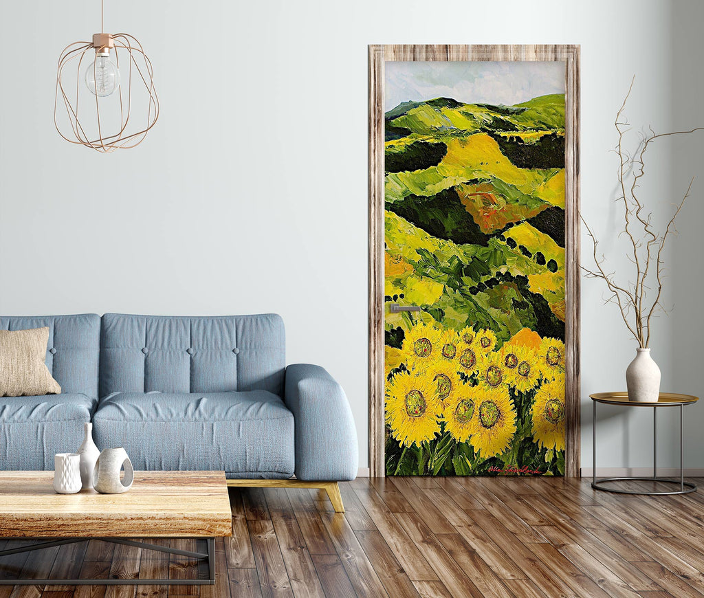 3D Meadow Hillside Sunflower Painting 9394 Allan P. Friedlander Door Mural Sinsin