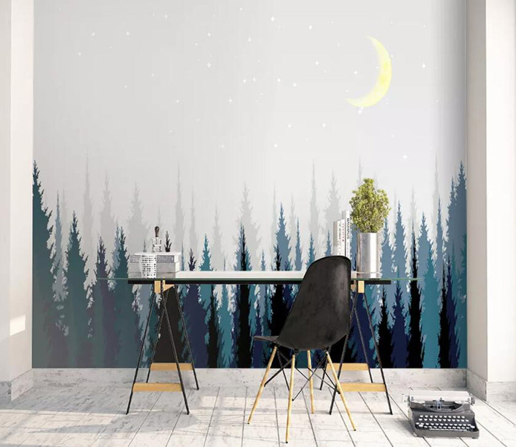 3D Moon Forest WC41 Wall Murals