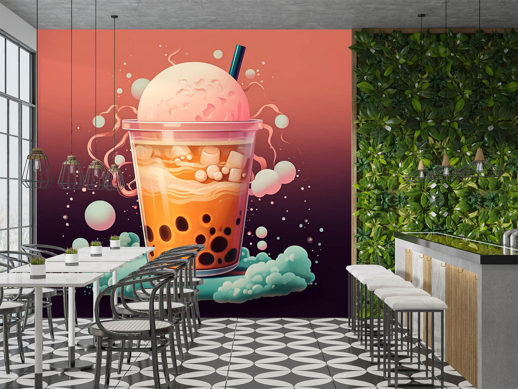 3D Pearl Tea 2027 Fruit Bubble Tea Milk Tea Shop Wall Murals Amy