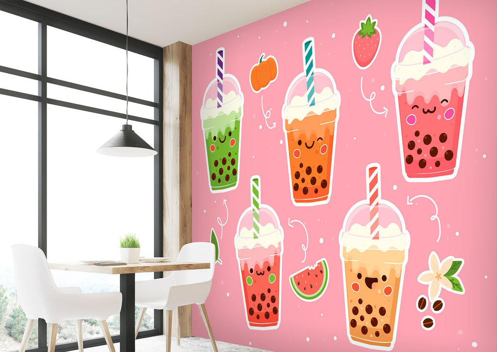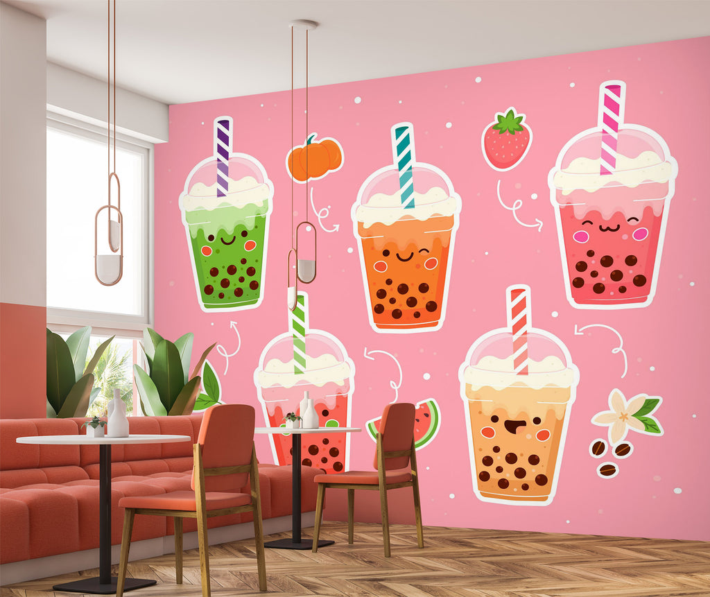 3D Pearl Tea 2033 Fruit Bubble Tea Milk Tea Shop Wall Murals Amy