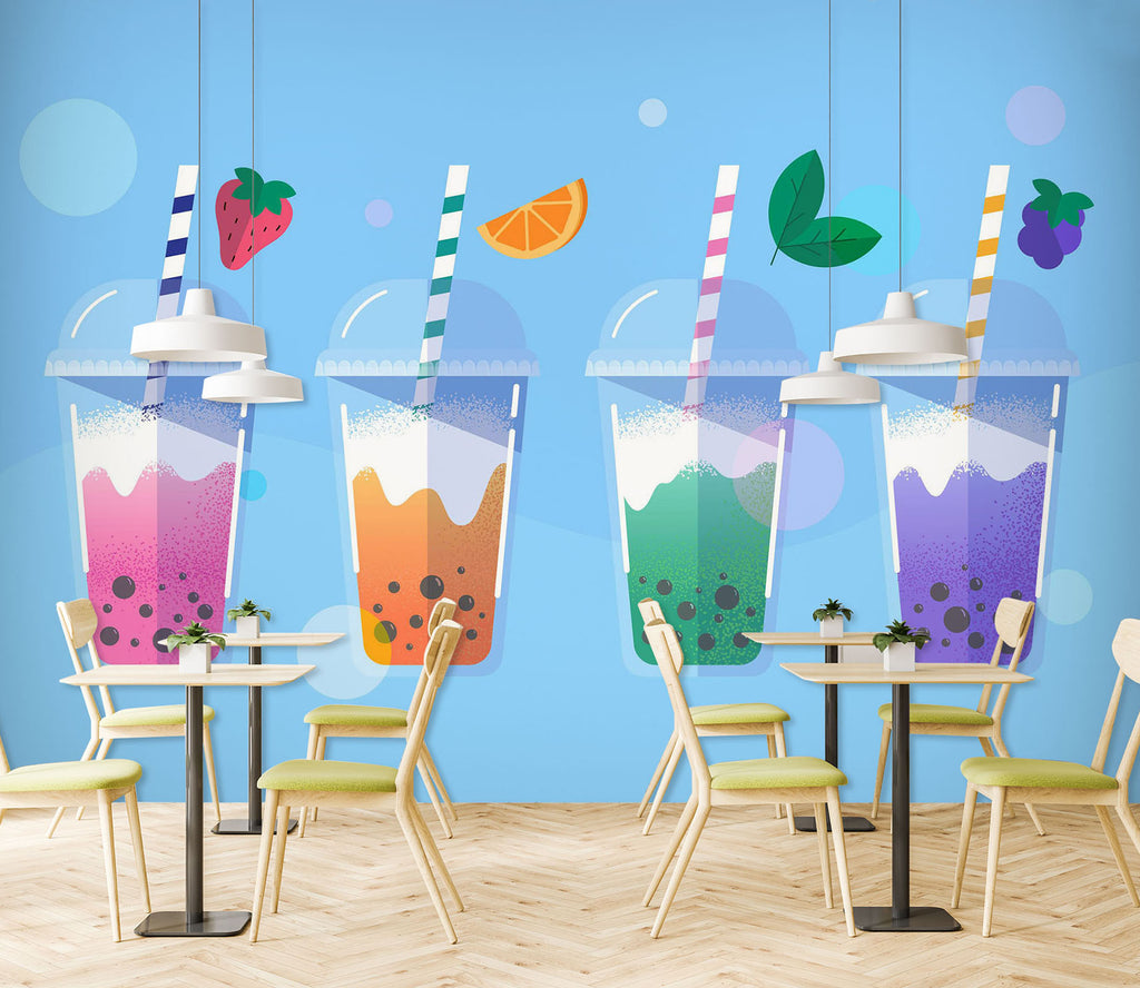 3D Pearl Tea 2034 Fruit Bubble Tea Milk Tea Shop Wall Murals Amy