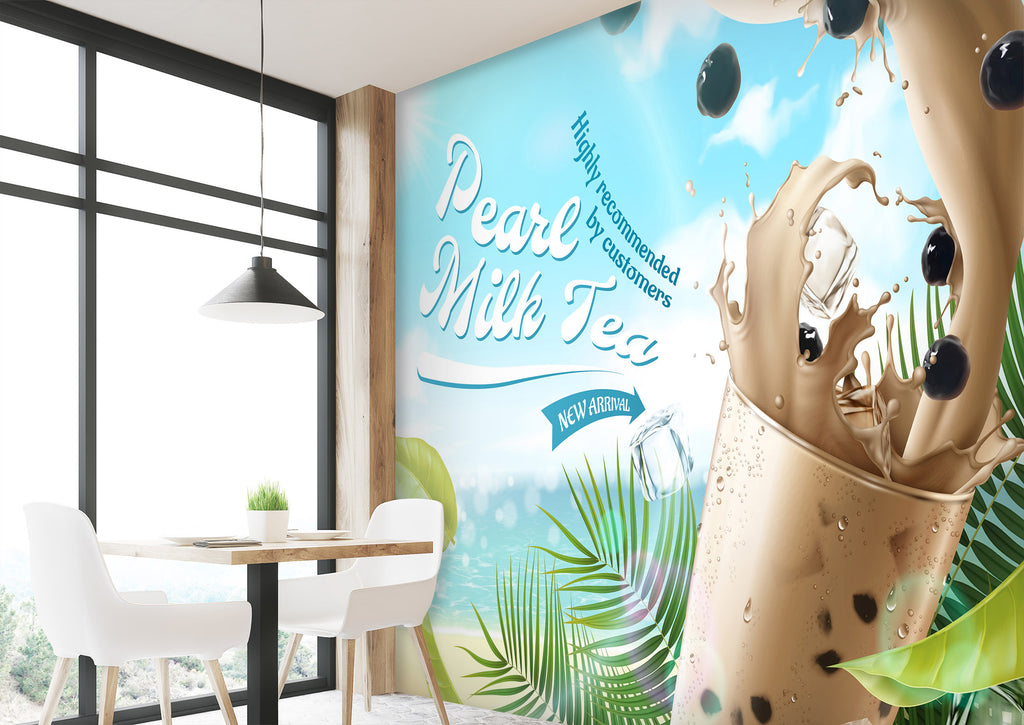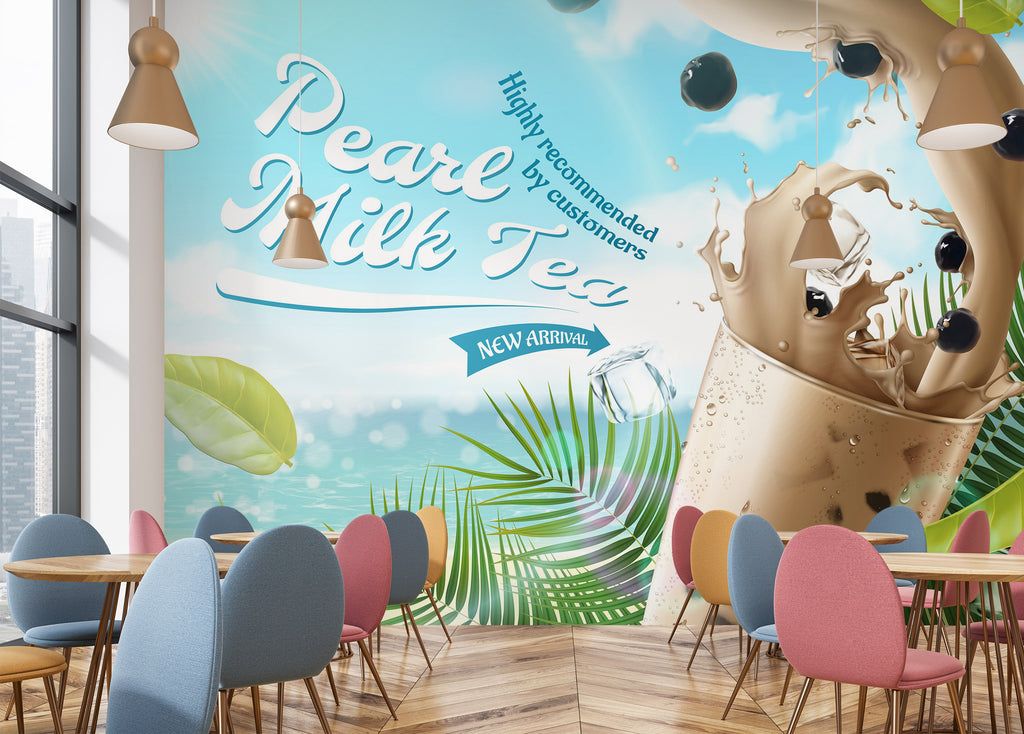 3D Pearl Tea 2044 Fruit Bubble Tea Milk Tea Shop Wall Murals