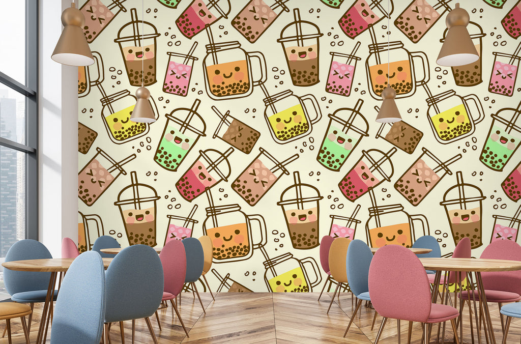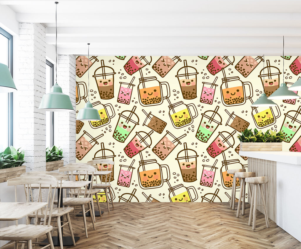 3D Pearl Tea 2053 Fruit Bubble Tea Milk Tea Shop Wall Murals Amy
