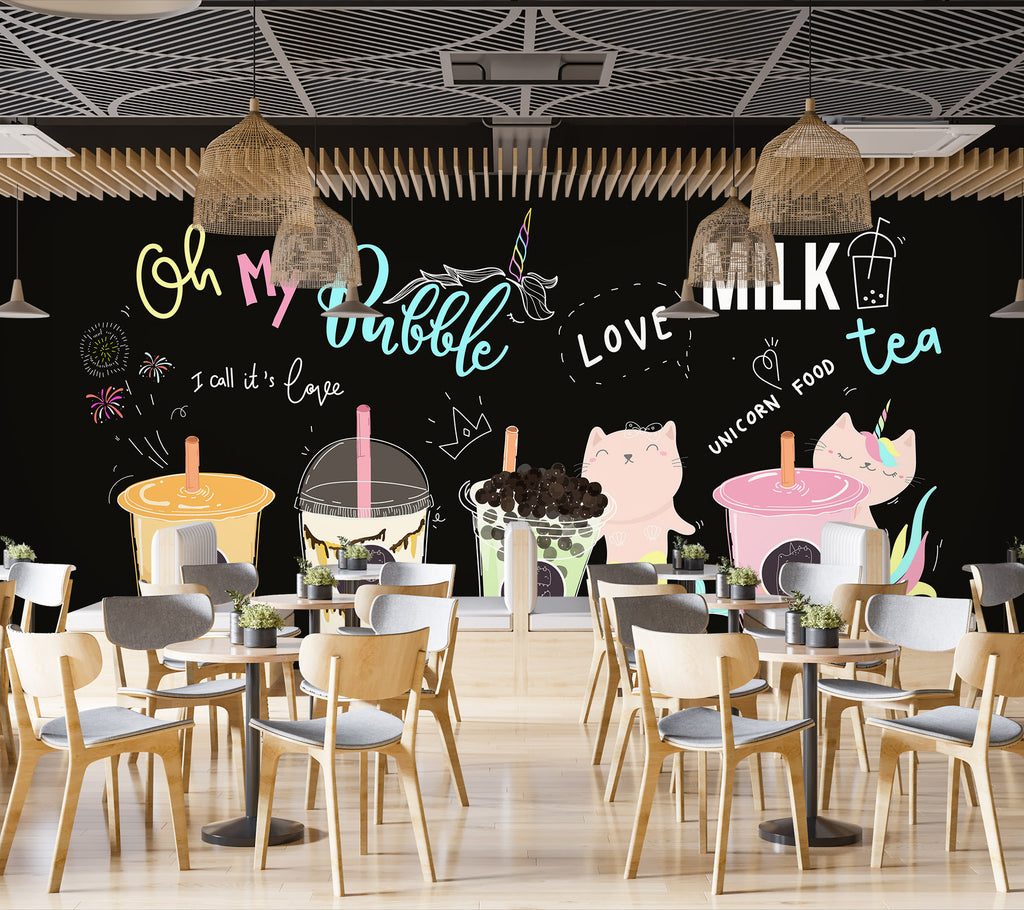 3D Pearl Tea 2054 Fruit Bubble Tea Milk Tea Shop Wall Murals Amy