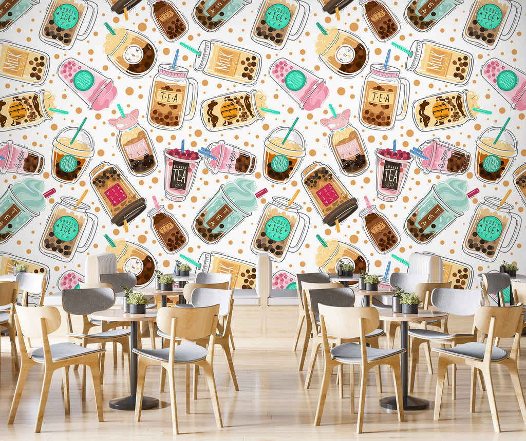 3D Pearl Tea 2064 Fruit Bubble Tea Milk Tea Shop Wall Murals Amy