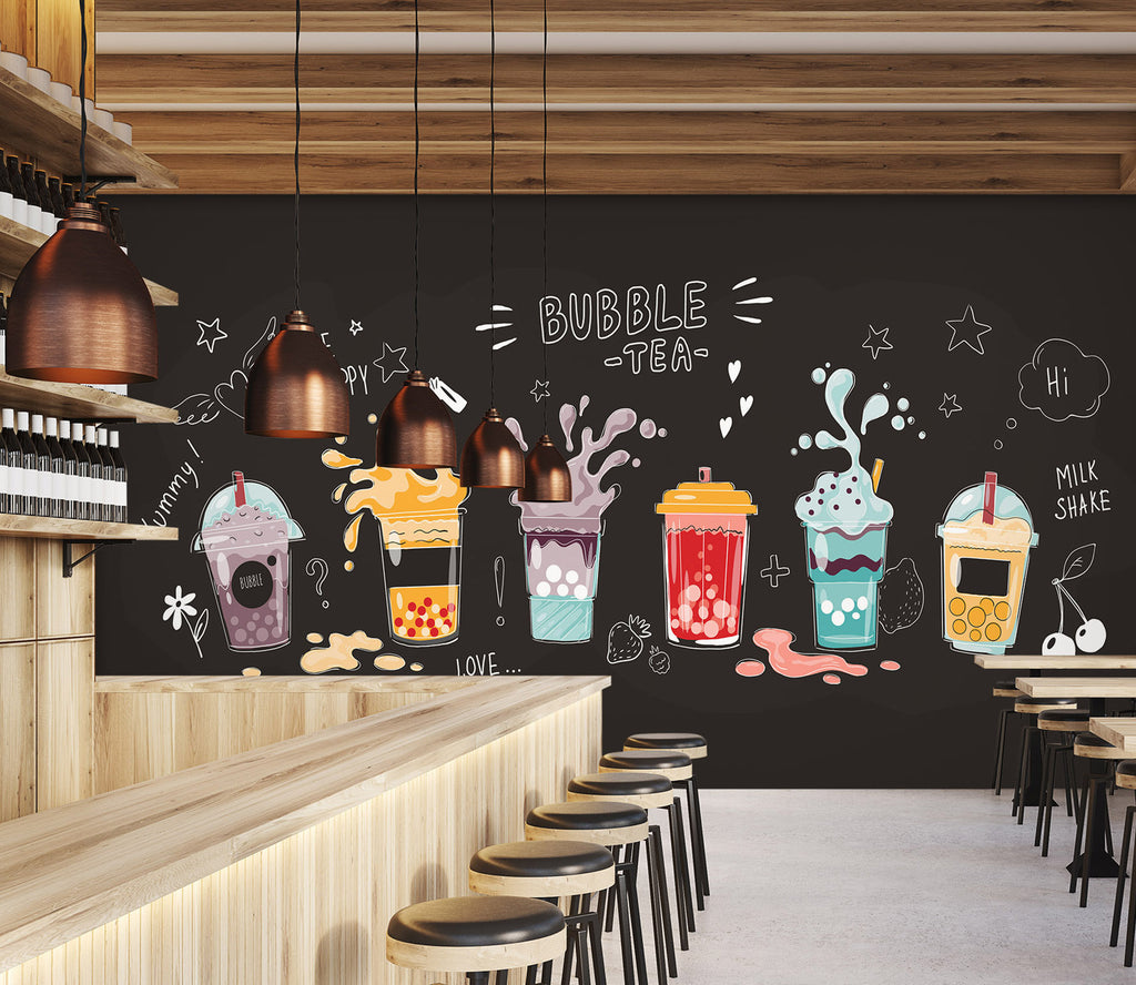 3D Pearl Tea 2066 Fruit Bubble Tea Milk Tea Shop Wall Murals Amy