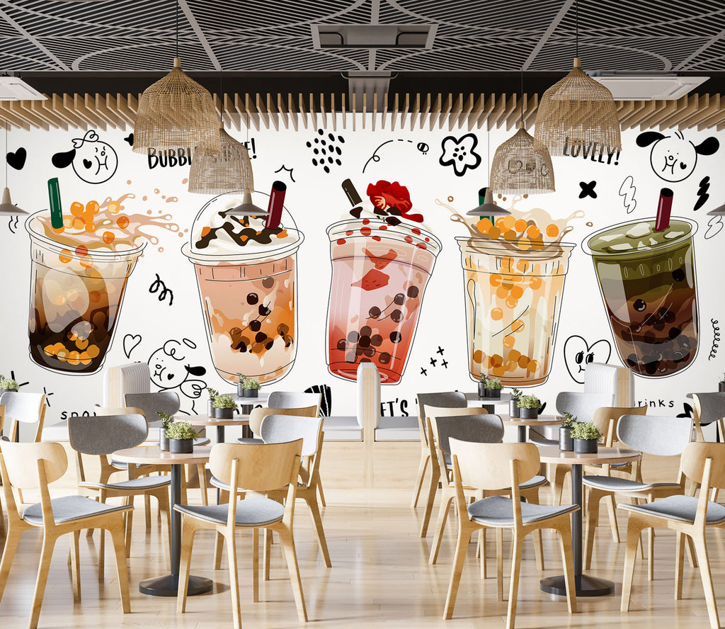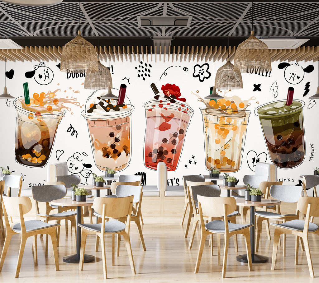3D Pearl Tea 2071 Fruit Bubble Tea Milk Tea Shop Wall Murals