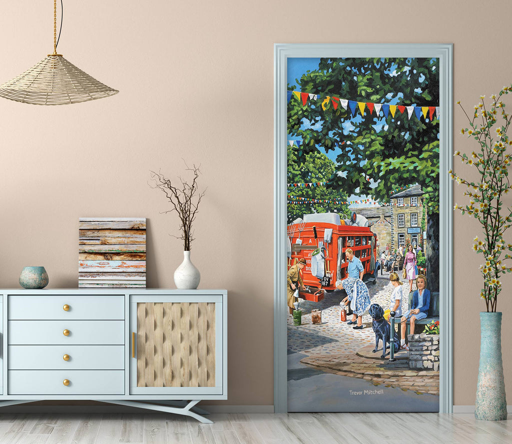 3D Red Bus People 103100 Trevor Mitchell Door Mural Sinsin
